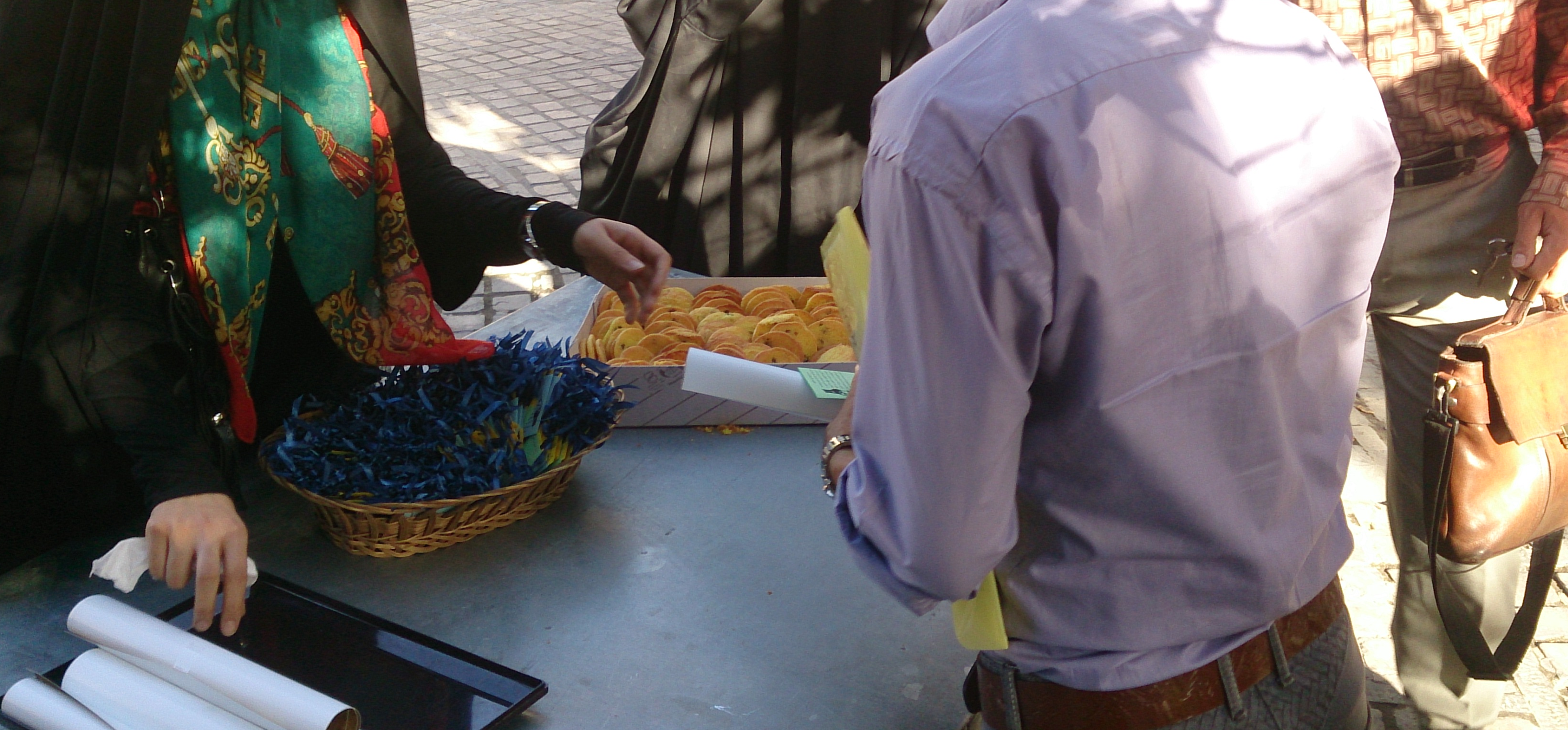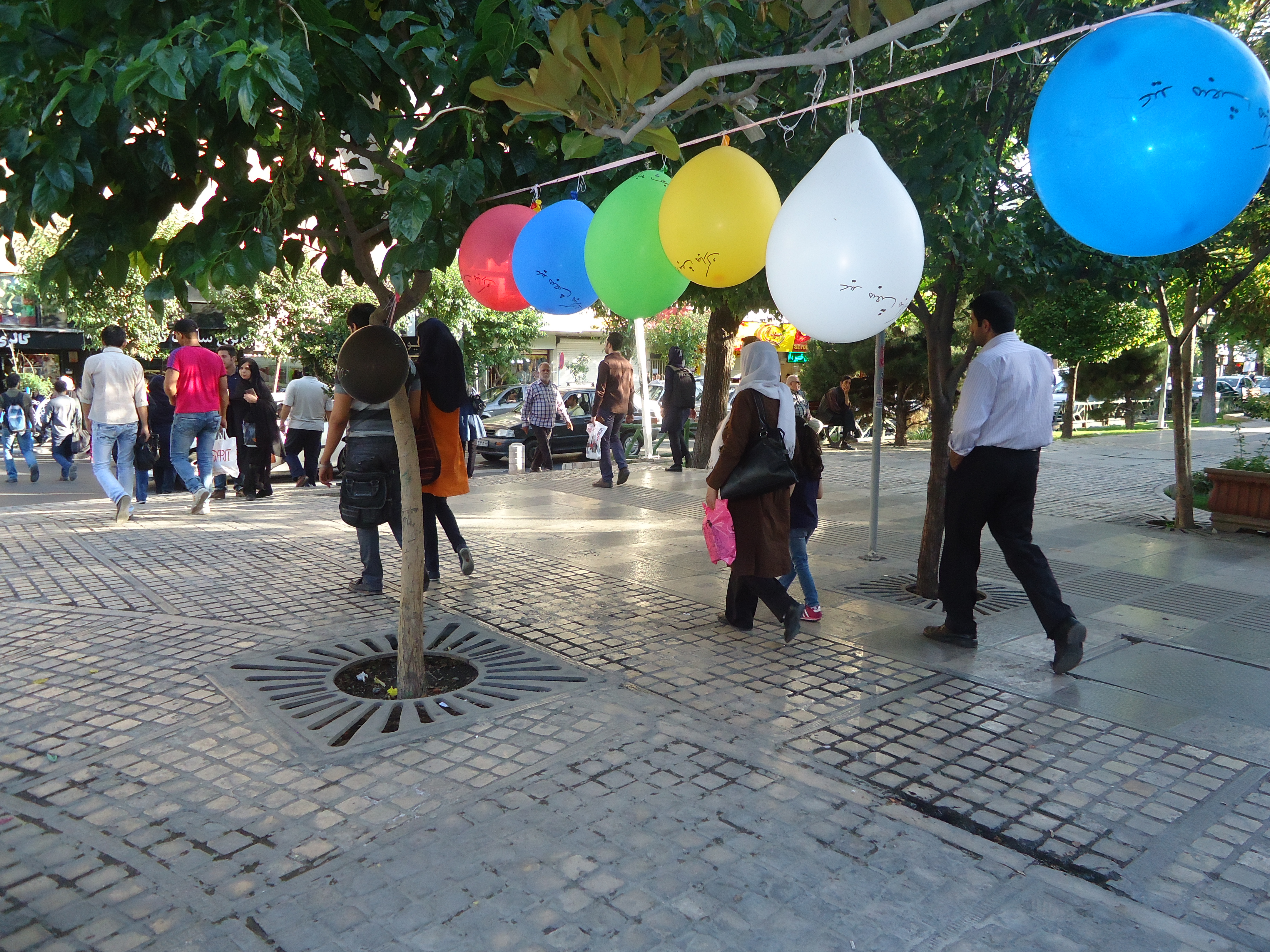 ساعت حدود 5:15 بعداز ظهر بود که به سمت میدون ولی عصر حرکت کردیم. مثل همیشه قسمت شد در خدمت چند نفر از دوستای جدید باشیم. میزها رو سوار کردیم، بادکنک ها رو هم با نخ به درختها وصل کردیم. این دفعه تلفات!!! زیاد بود. کم کم 4 تا بادکنک ترکید (: (: (: